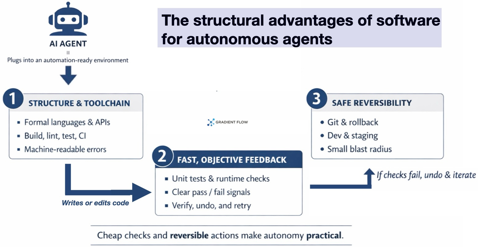 A recent Anthropic study on agent autonomy offers a clear preview of where knowledge work is headed. Anthropic analyzed millions of real interactions across their public API and Claude Code to see how people actually deploy autonomous systems. The catch is that their clearest view comes from Claude Code, where they can track longer workflows end to end. I treat their strongest takeaways as a snapshot of coding agents rather than a universal map of all professions. That distinction matters. Software development is the proving ground for autonomous work because it requires far less hand-holding. You can run tests, get immediate pass or fail feedback, roll back mistakes, and break large tasks into smaller steps using mature and well-defined tools.