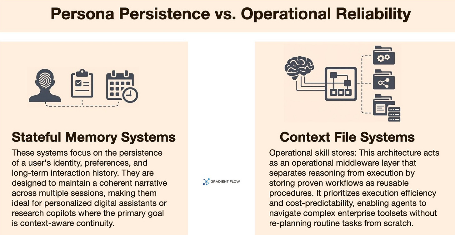 Organizations should prioritize stateful memory systems when the main goal is conversation and personalization. This is perfect for research copilots or personal assistants. On the other hand, a CFS architecture is the better choice for high-repetition operational work like DevOps automation or data engineering. In those environments, the goals are cost predictability and the reuse of proven procedures.