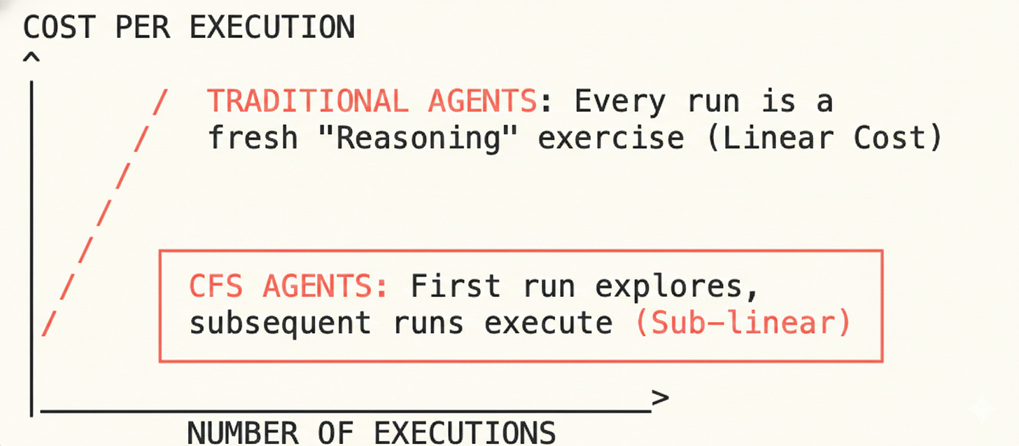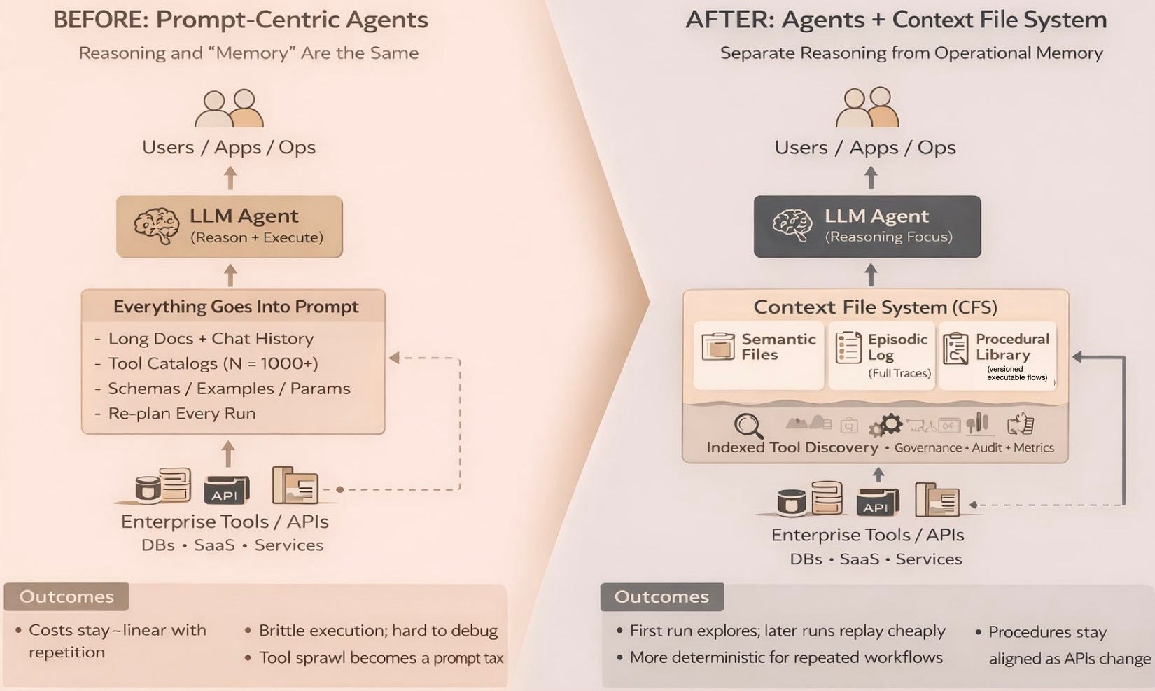 This approach fundamentally changes the economics of AI. In traditional systems, the 1,000th execution of a workflow costs as much as the first because the agent has to re-plan the task from scratch. With a CFS, the first execution pays an "exploration cost" in tokens. Every run after that simply replays the proven procedure. This often reduces token consumption by over 90 percent. It also solves the problem of "tool sprawl." Instead of stuffing a prompt with hundreds of API definitions, the CFS indexes these capabilities externally. It only loads the specific documentation required for the task at hand. This ensures that agents remain fast and accurate even as your company infrastructure grows in complexity.